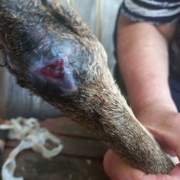 Under Veterinarian Advice, Betadine was used here, it would scab and fall off leaving bone with not enough skin to cover, so was not healing properly